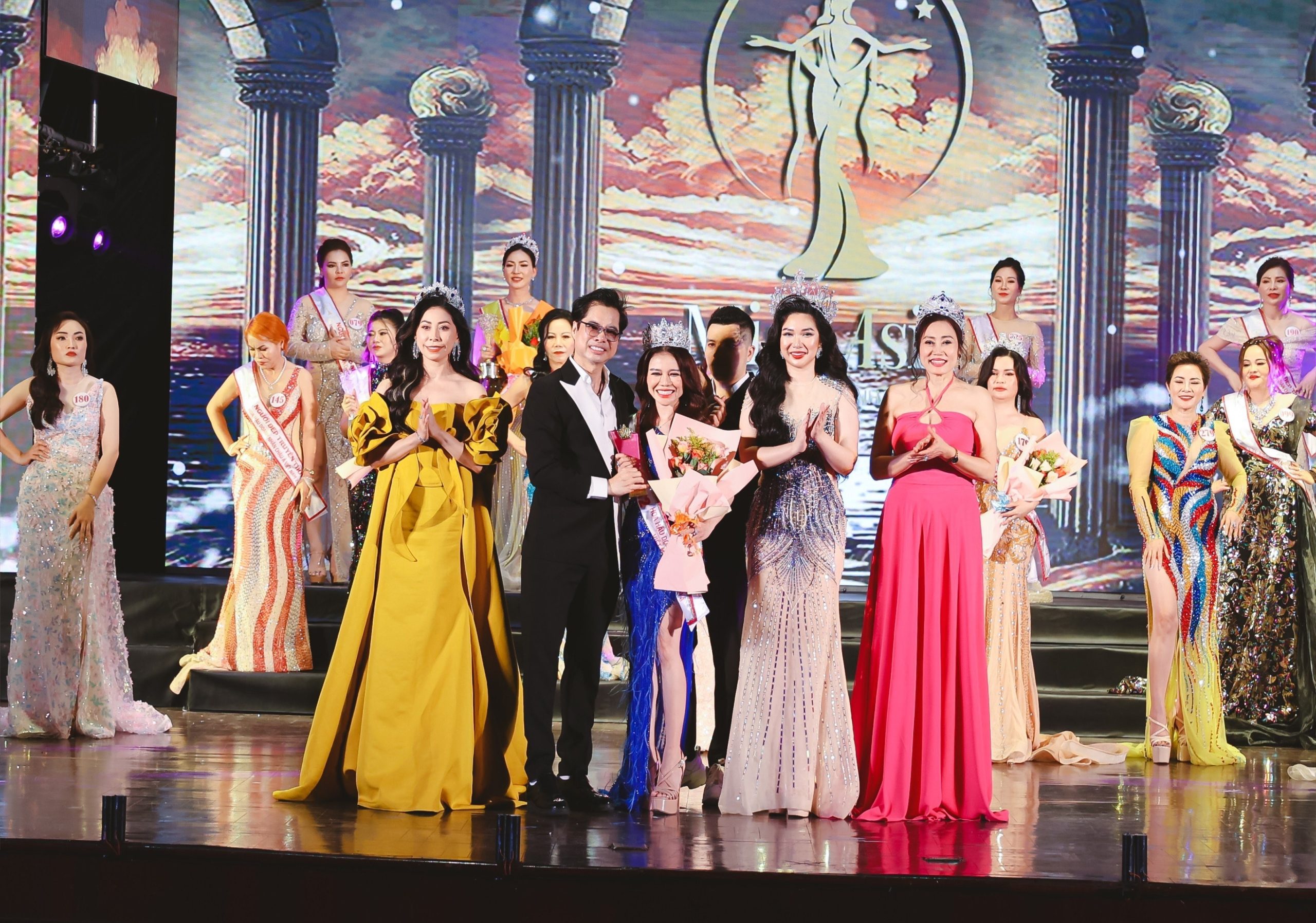 Á hậu Nguyễn Hạnh Nguyên rạng rỡ cùng Chủ tịch Đặng Gia Bena và dàn Hoa hậu, Á hậu, Người đẹp trên sân khấu Chung kết