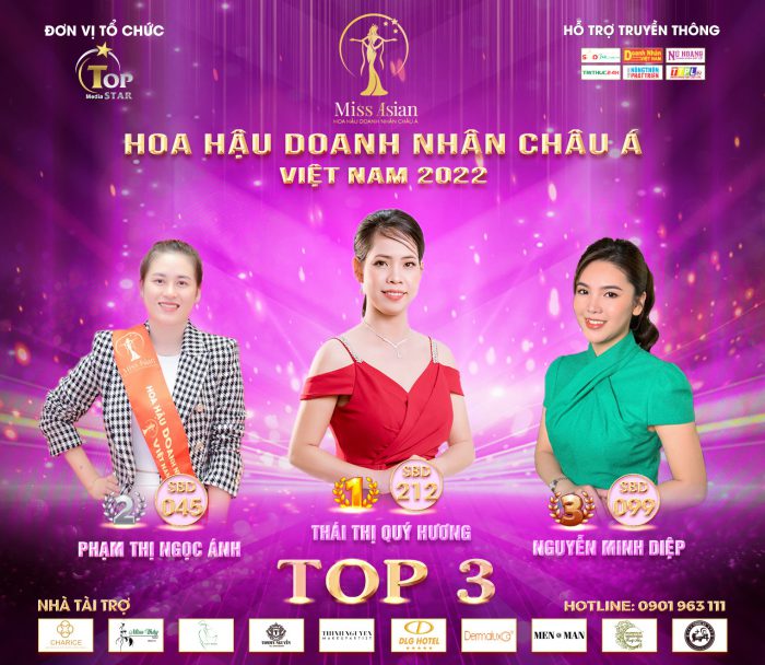 Được biết, Hoa hậu Doanh nhân Châu Á Việt Nam 2022 là cuộc thi nhan sắc dành cho các nữ Doanh nhân Việt Nam do Hãng truyền thông Topstar tổ chức. Cuộc thi không chỉ tôn vinh vẻ đẹp thành đạt, tài năng của các nữ Doanh nhân, mà còn lan tỏa tấm lòng nhân ái, nâng tầm giá trị tri thức đến với bạn bè quốc tế. Danh hiệu “Người đẹp được yêu thích nhất” đang trong gian đoạn nước rút. Các thí sinh cần tăng tốc để về đích an toàn. Danh hiệu danh giá này sẽ được trao tặng trong đêm Chung kết cuộc thi diễn ra tại Cố đô Huế thơ mộng.